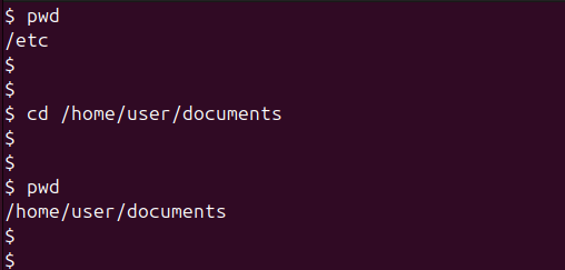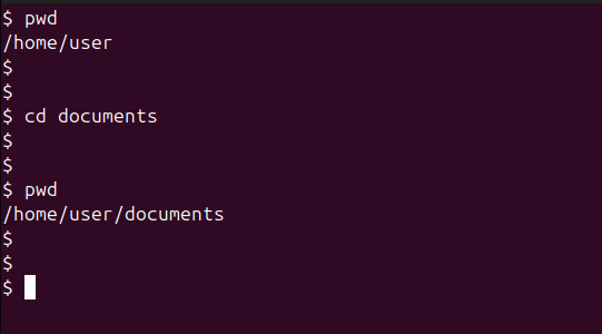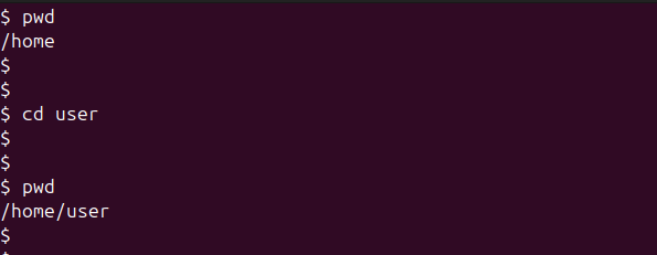 これで /home/user に移動して、カレントディレクトリが変わります。