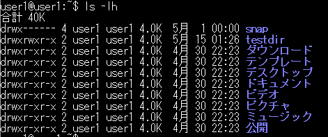 ls -l | 詳細付きで一覧表示 |