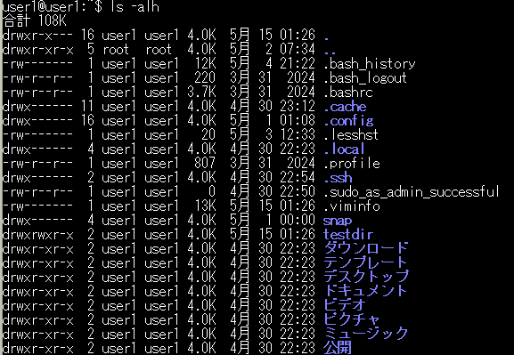 - 詳細な情報(パーミッション、リンク数、所有者、サイズ、日時)を表示します。
