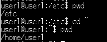 pwd:現在の場所(パス)を確認する