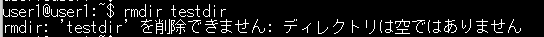 ※空でないディレクトリを削除するには rm -r を使います(後述)