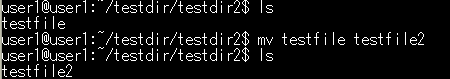 書式:mv 変更前ファイル名(ディレクトリ) 変更後ファイル名(ディレクトリ)