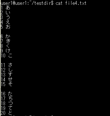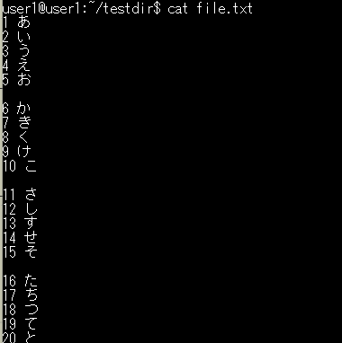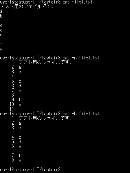 -n:行番号を表示-b:空行を除いた行に番号を付ける