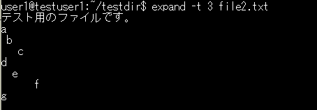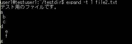 expandコマンドは、タブ文字をスペースに変換するコマンドです。