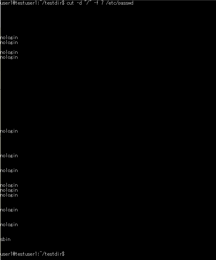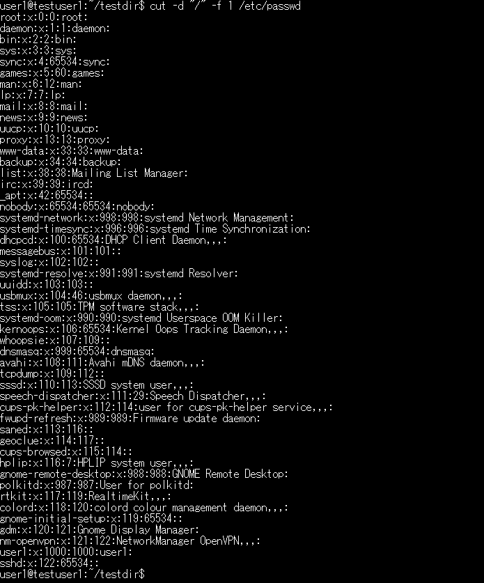 基本構文:cut -d":" -f フィールド番号 ファイル名