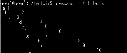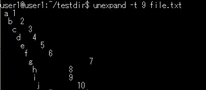 基本構文:unexpand -t 空白数 ファイル名