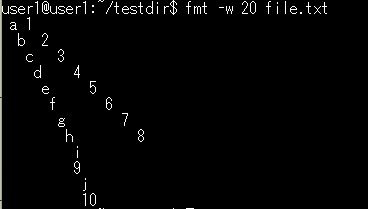 fmtコマンドは、テキストの整形(幅揃え)を行うコマンドです。
