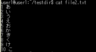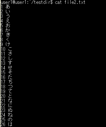 catコマンドは、ファイルの中身を表示するコマンドです。