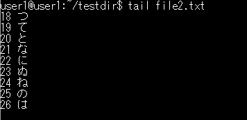 tailコマンドは、ファイルの末尾部分(デフォルトで10行)を表示するコマンドです。