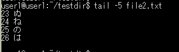 基本構文:tail -n 行数 ファイル名