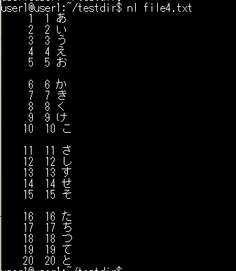 10. nl(行番号を付けて表示)