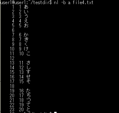 基本構文:nl ファイル名