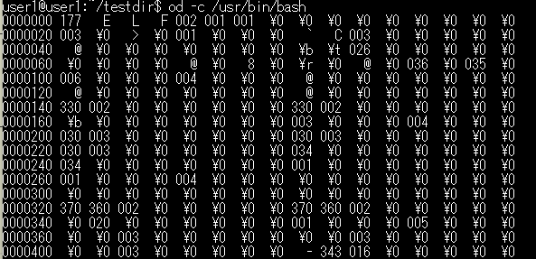 od(Octal Dump)コマンドは、ファイルの内容をバイナリ(2進数)・8進数・16進数・ASCII 文字などで表示するコマンドです。
