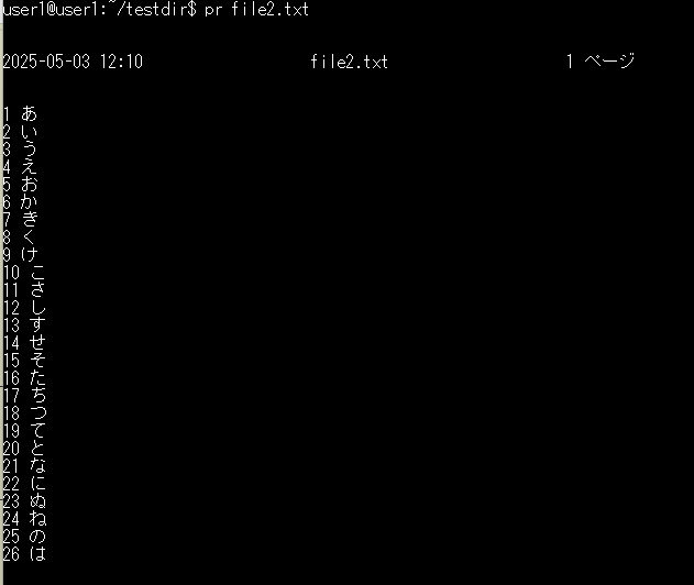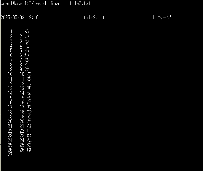 基本構文:pr -n ファイル名