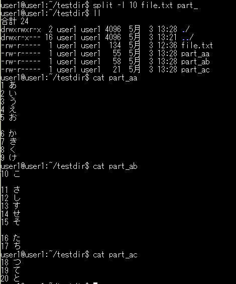16. split(ファイルを分割)