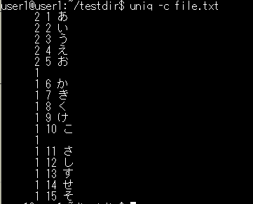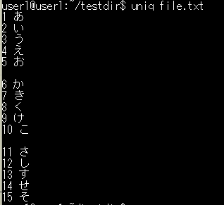 基本構文:uniq ファイル名
