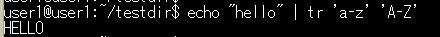 1. 小文字を大文字に変換:echo "hello" | tr 'a-z' 'A-Z'