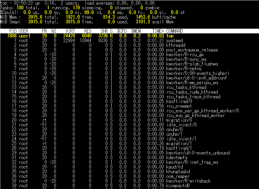 availableメモリが極端に少ないと警戒。- スワップが頻繁に使用されているとパフォーマンス低下の要因に。