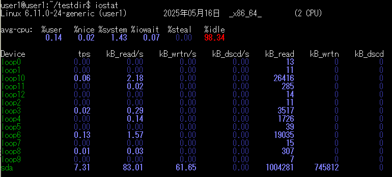| ディスク | iostat, iotop, vmstat | I/O待ち、読み書きの多いプロセス |